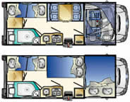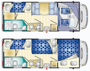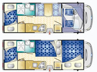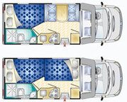 Az 5 lakótér elrendezéssel készűlő katamarano-sorozat 4 alkóvos és 1 félintegrált autóból áll.