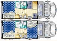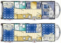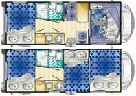 Az igen kedvező árú autókhoz ki-ki igénye szerint rendelhet az extrák igen széles választékából.A 6 lakótér elrendezéssel készülő Trimarano-sorozatban 4 alkóvos és 2 félintegrált lakóautó van.